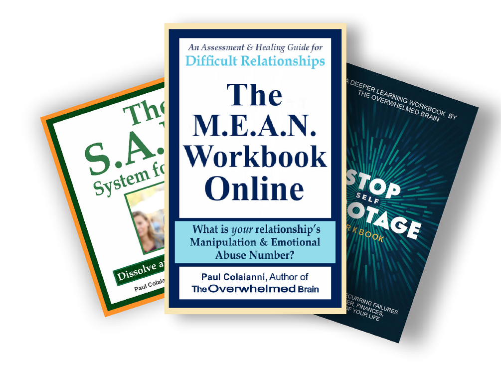 The M.E.A.N. Workbook Online w/group, The S.A.F.E. System for Anxiety, and Stop Self-Sabotage